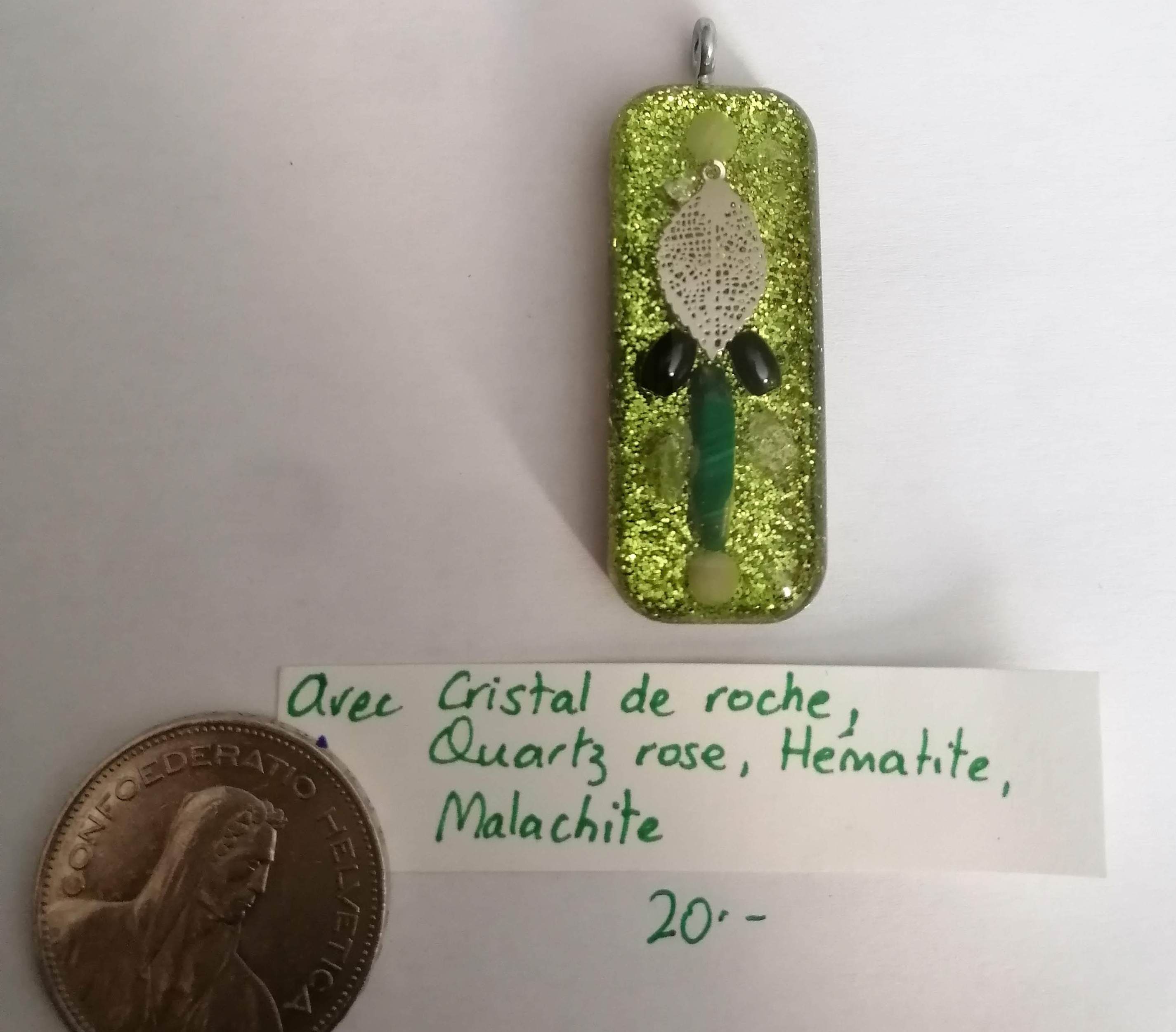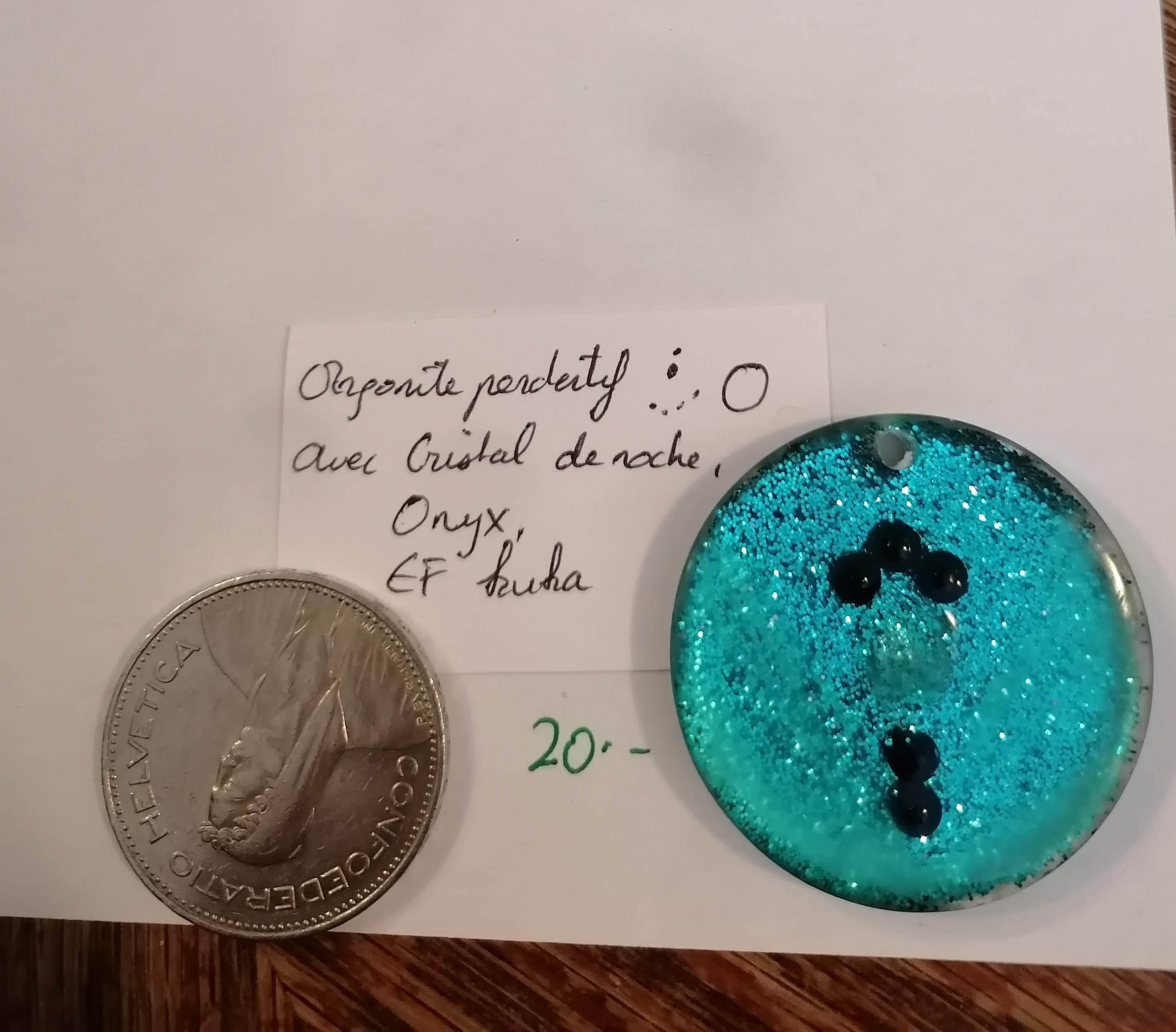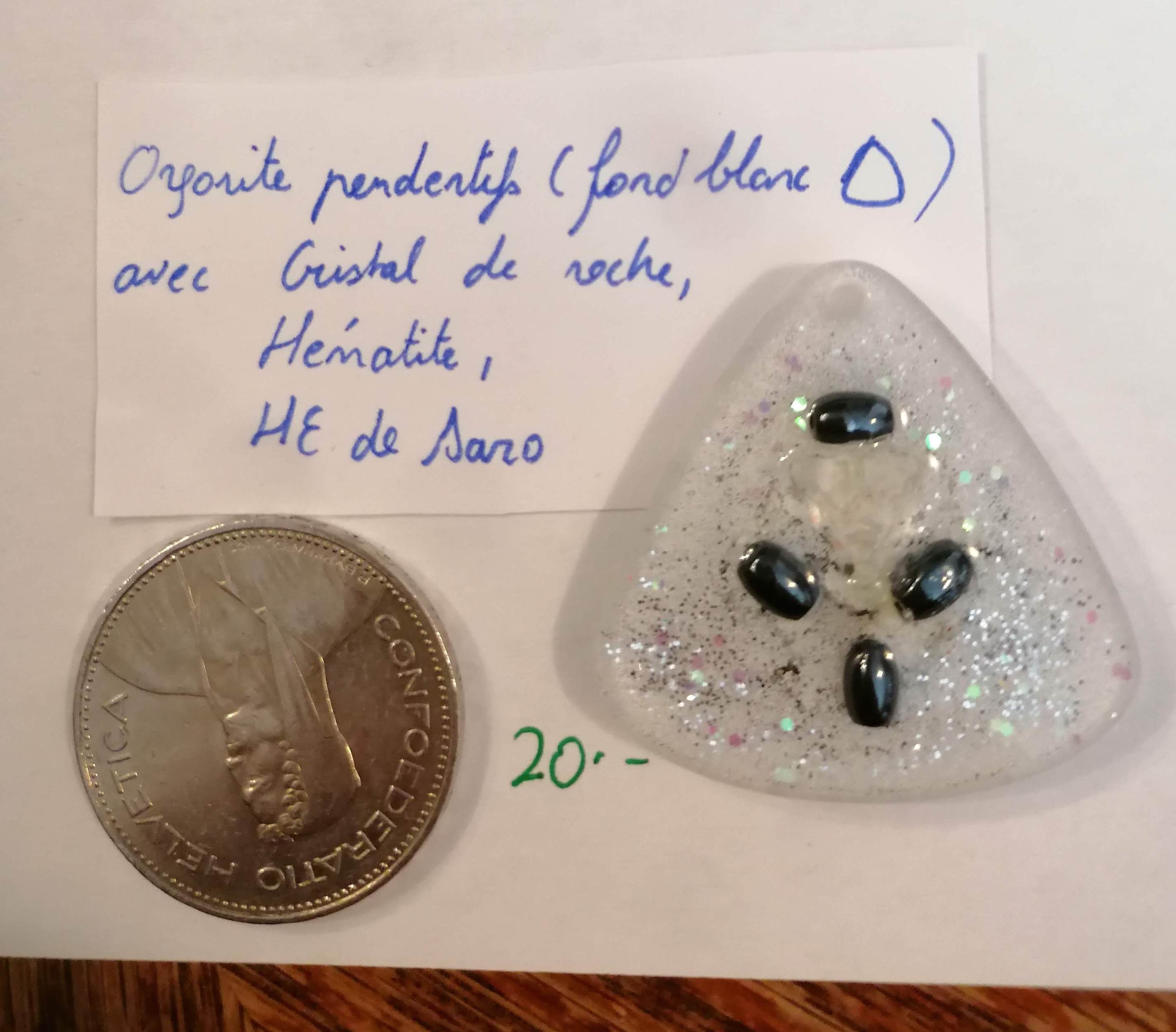 Des pierres ramassées durant mes balades, transformées en Orgonites pendentifs, 30.- pièce