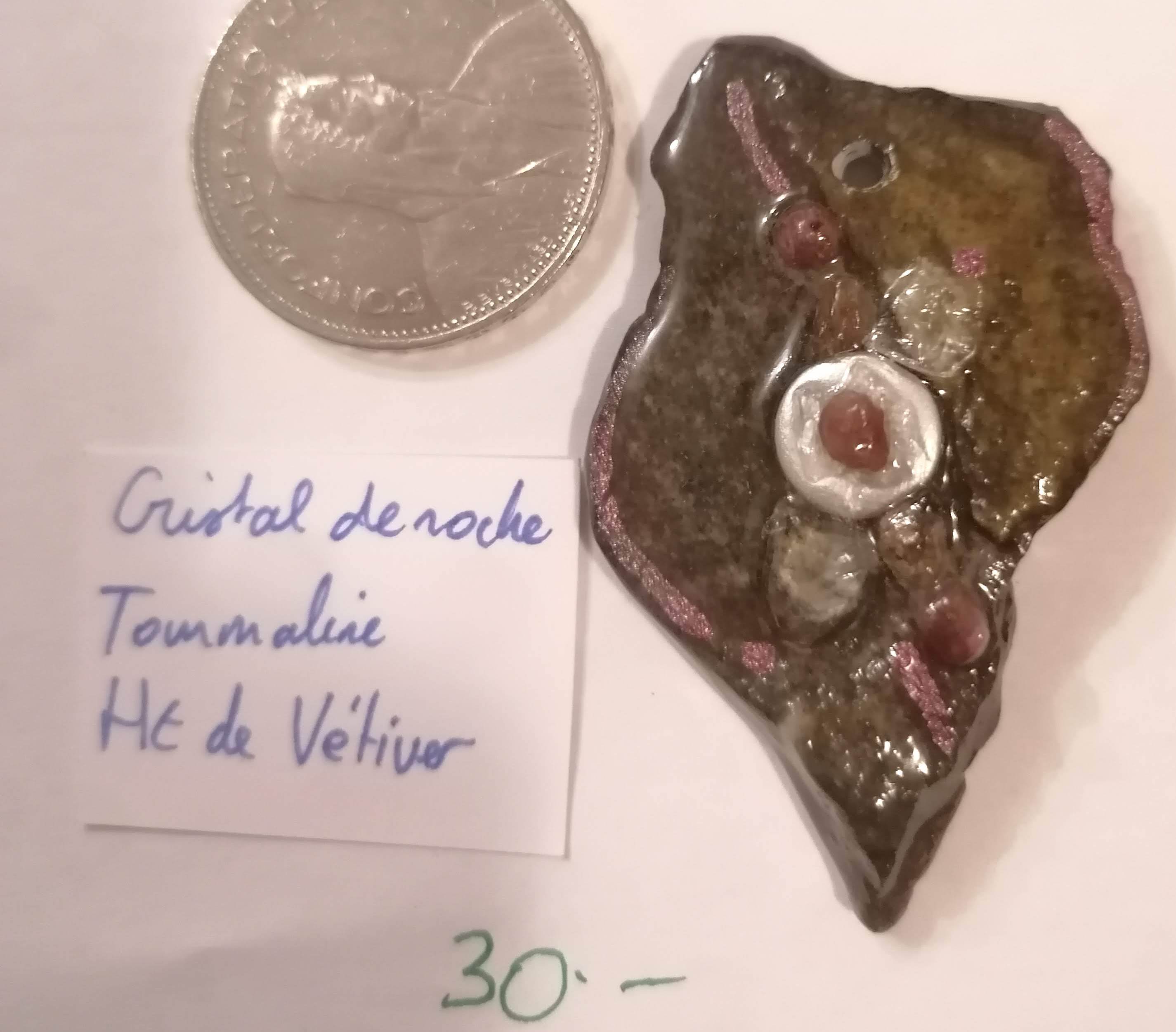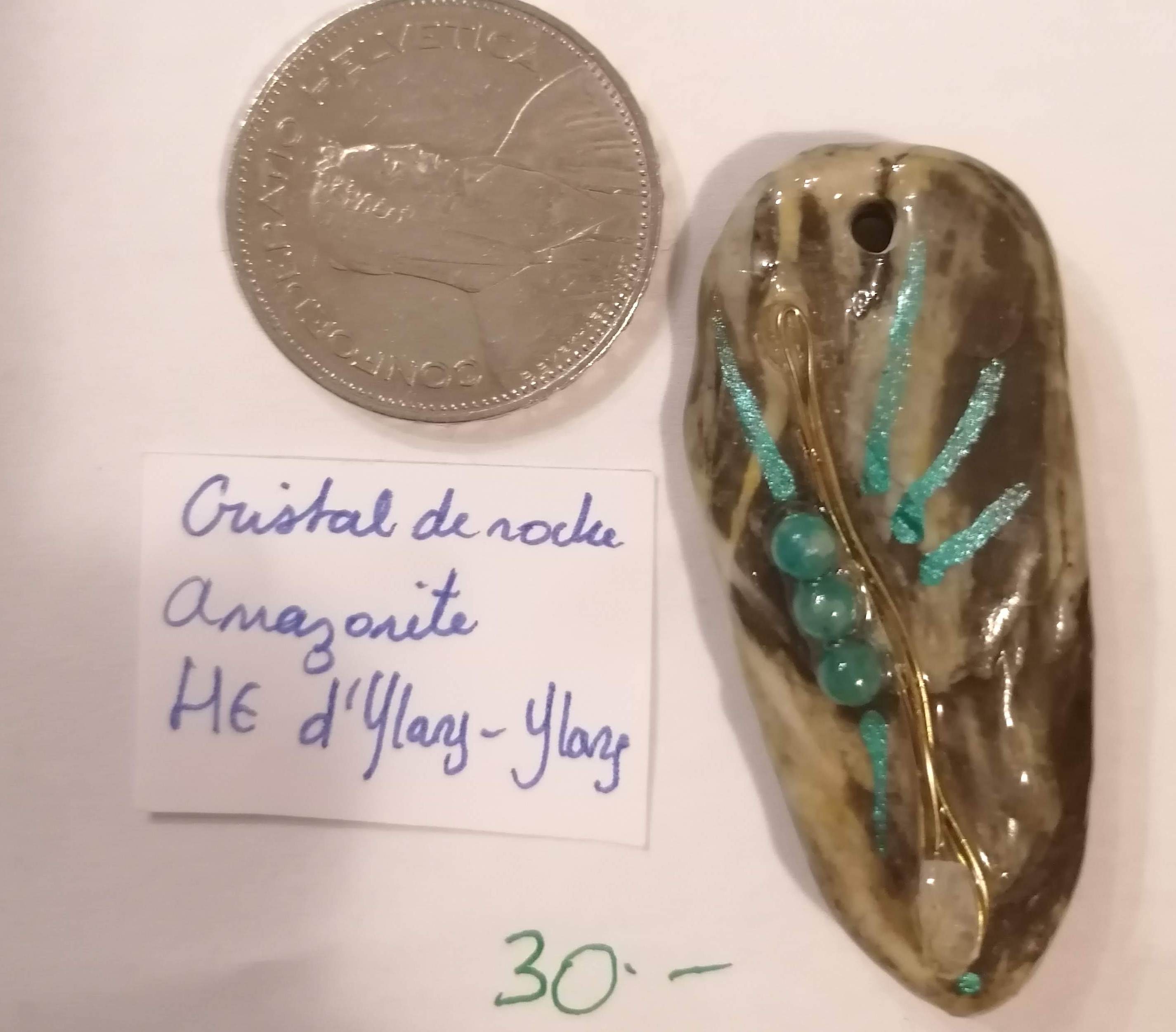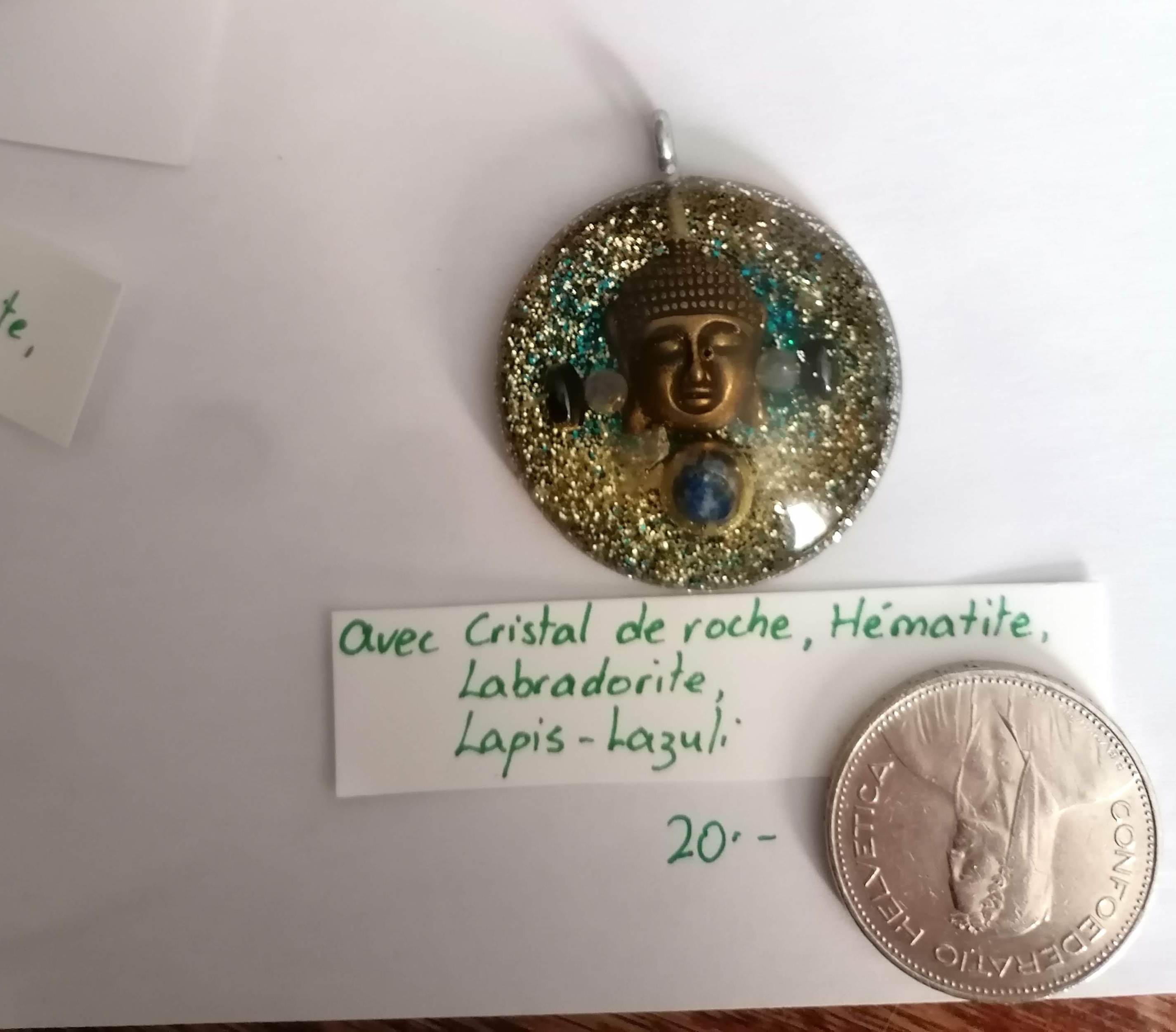 Des pierres ramassées durant mes balades, transformées en Orgonites pendentifs, 30.- pièce
