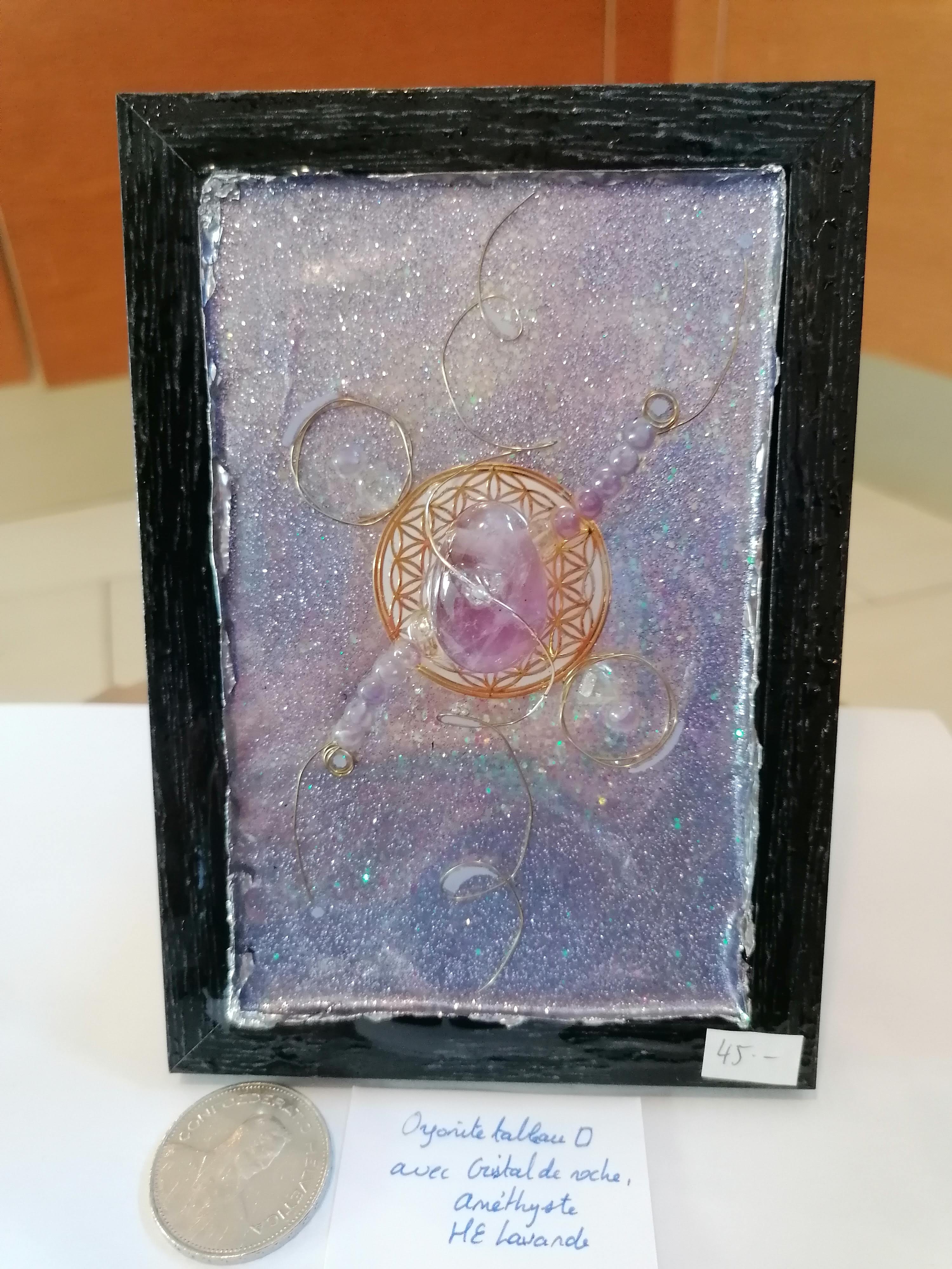 Les Tableaux Orgonites en support bois, 45.- pièce
