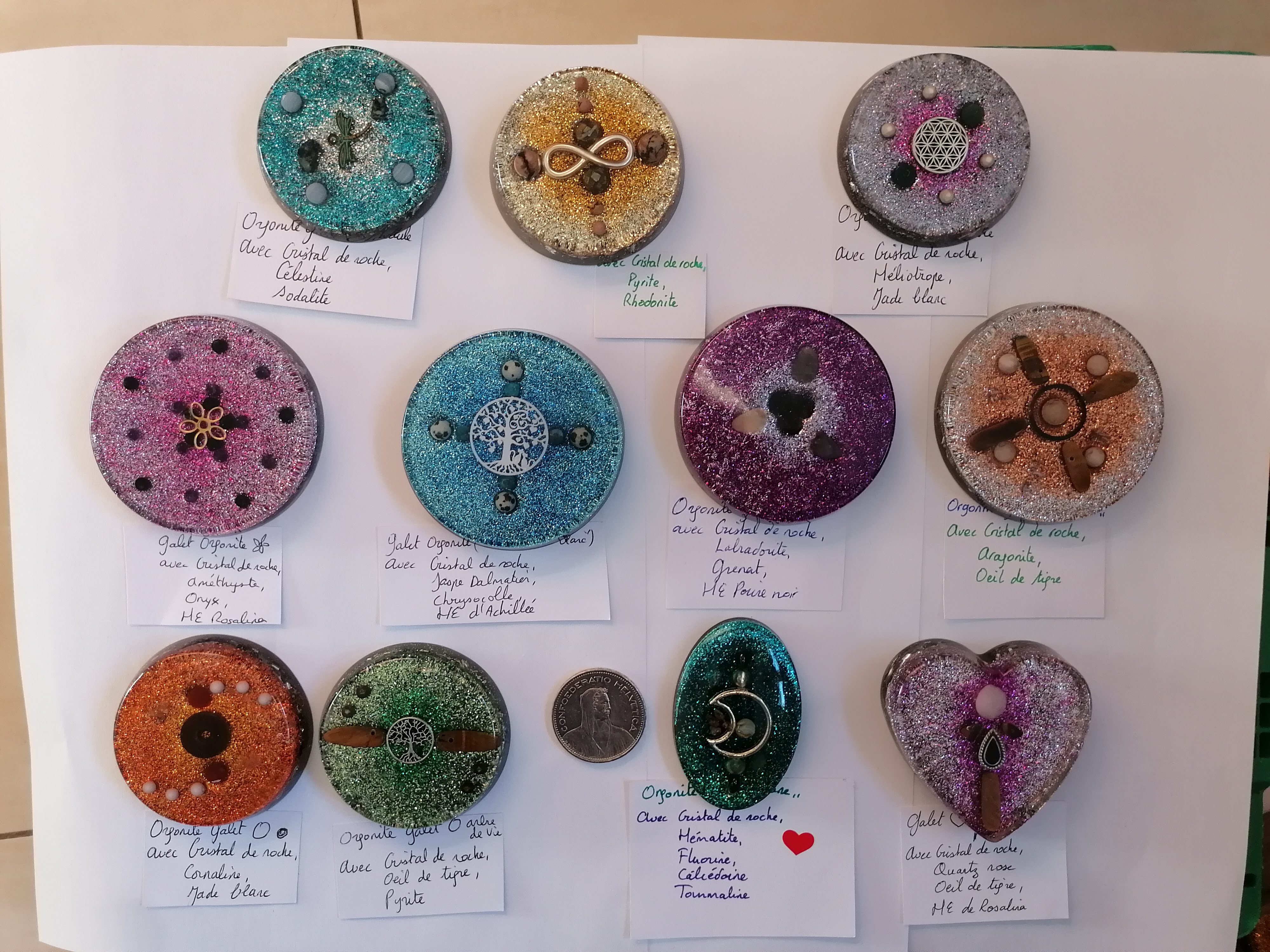 Voici les Orgonites crées, chaque création m'a emmenée vers des horizons merveilleux...