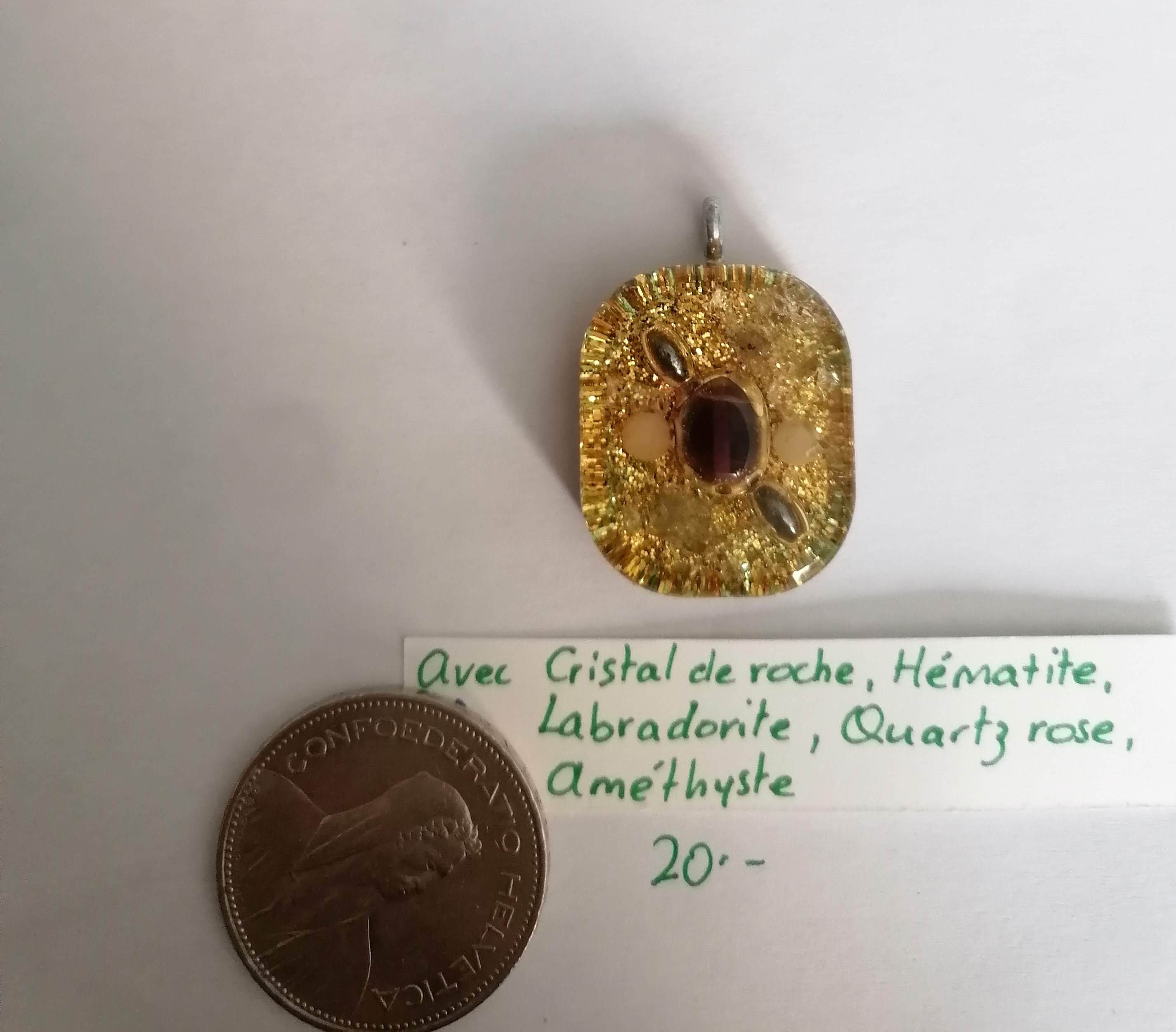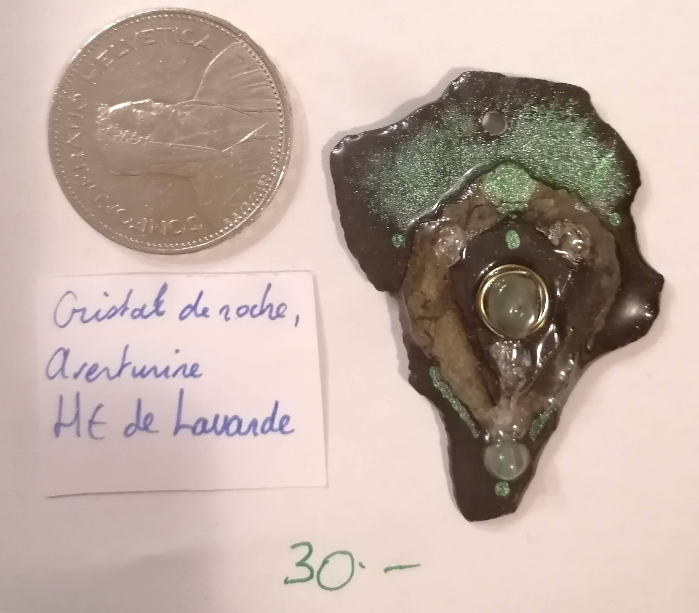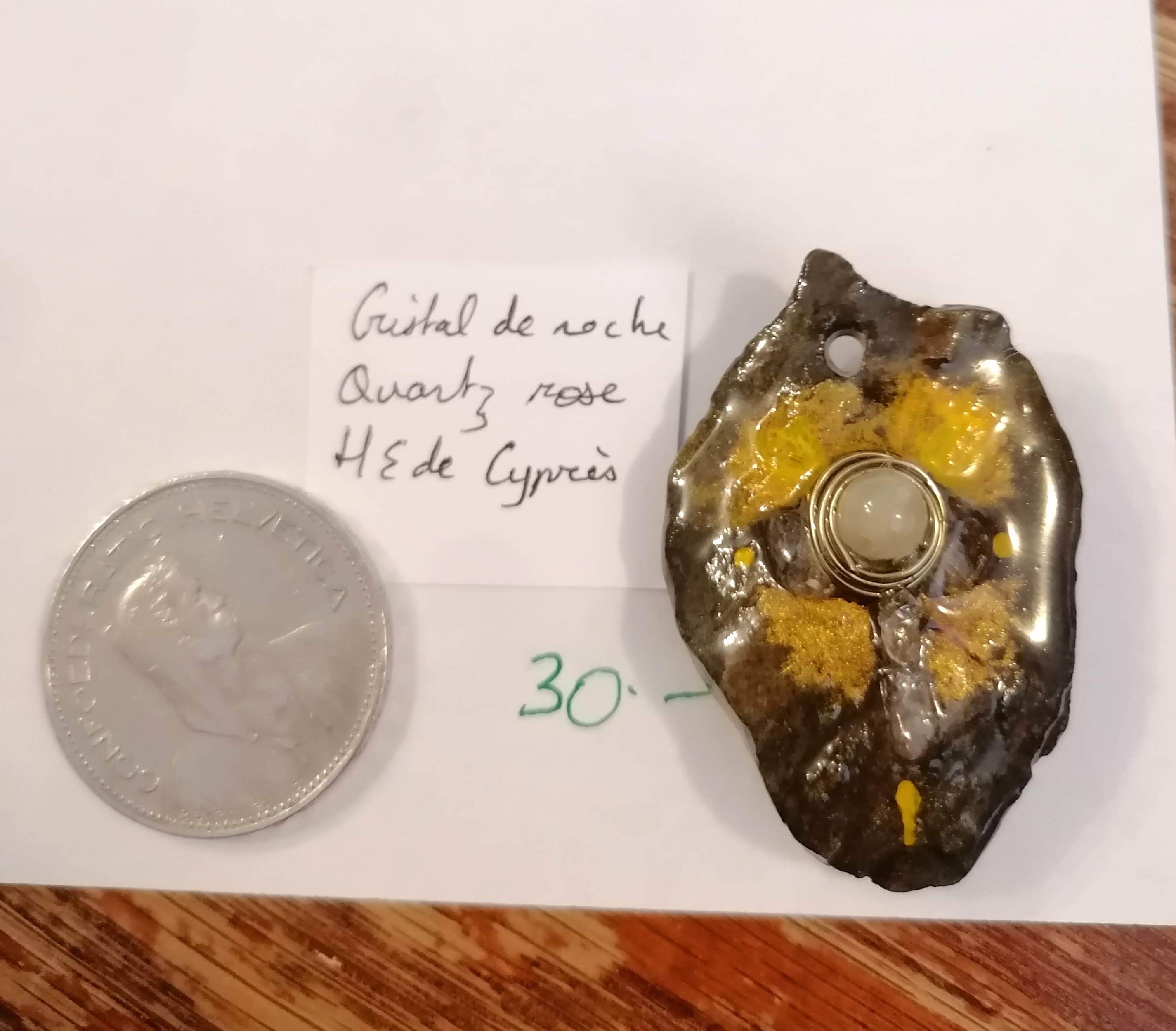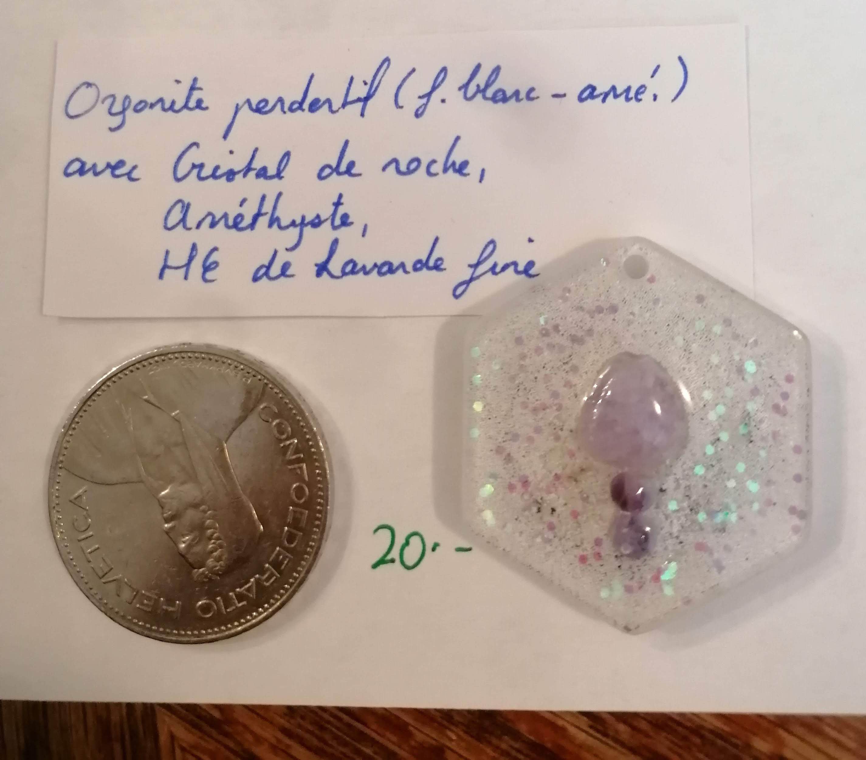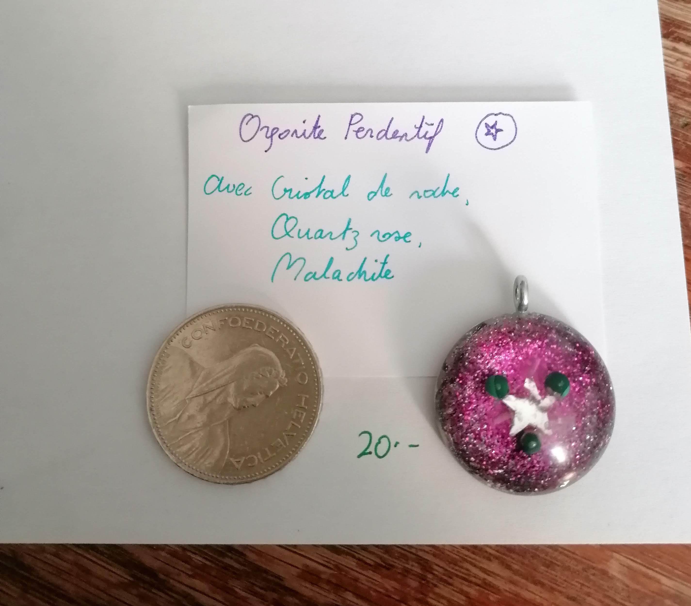 Des pierres ramassées durant mes balades, transformées en Orgonites pendentifs, 30.- pièce