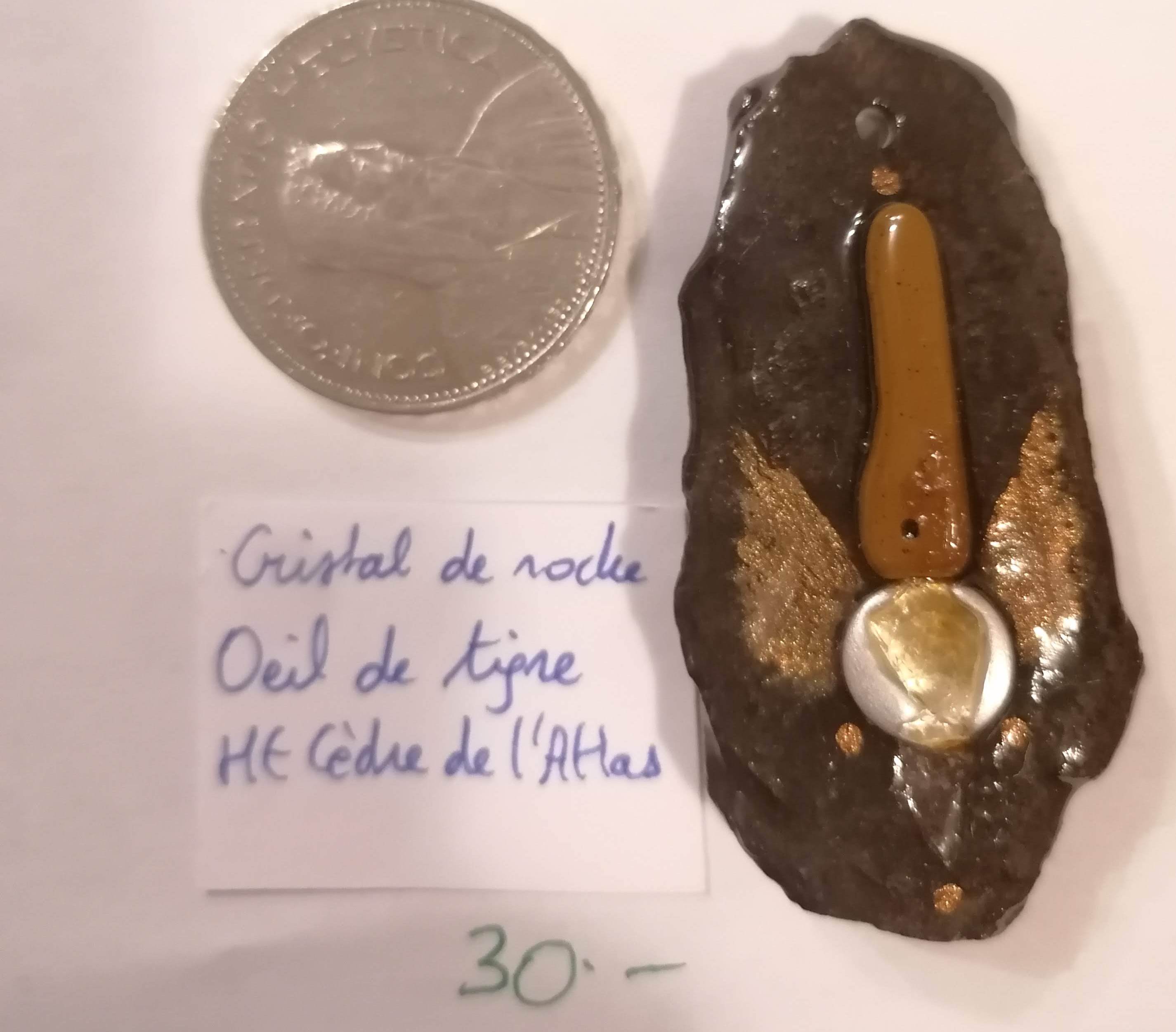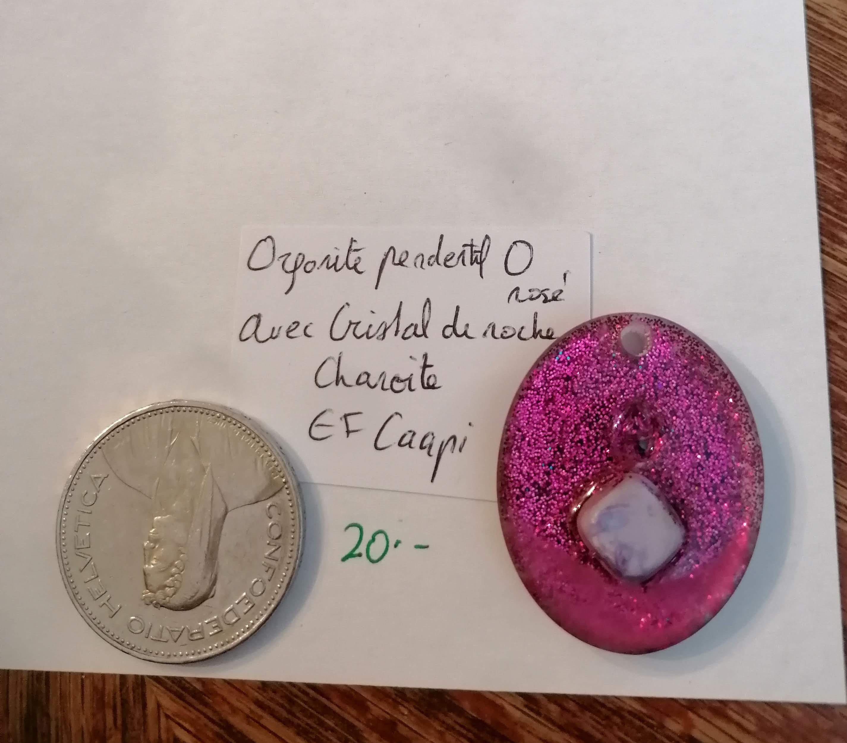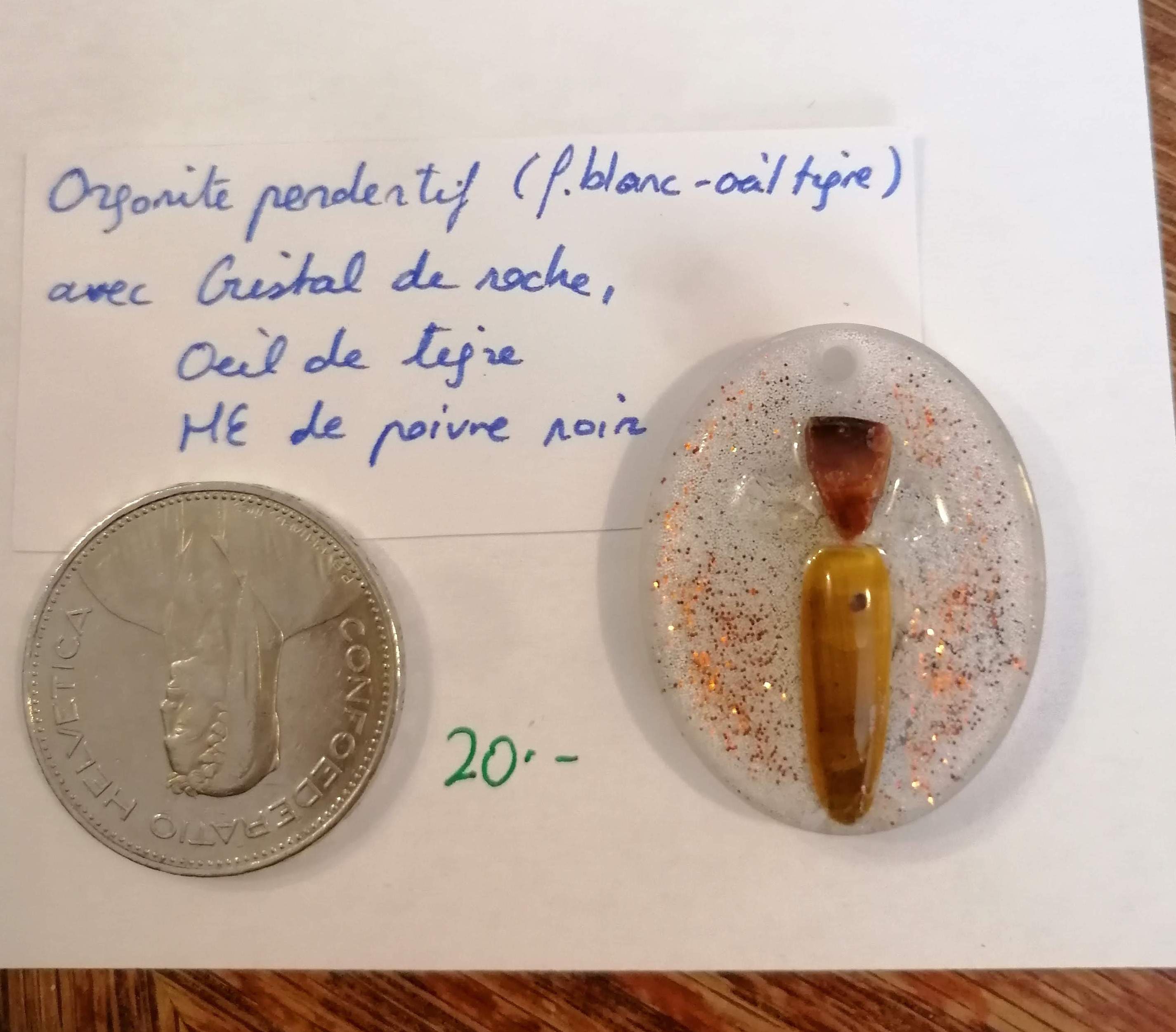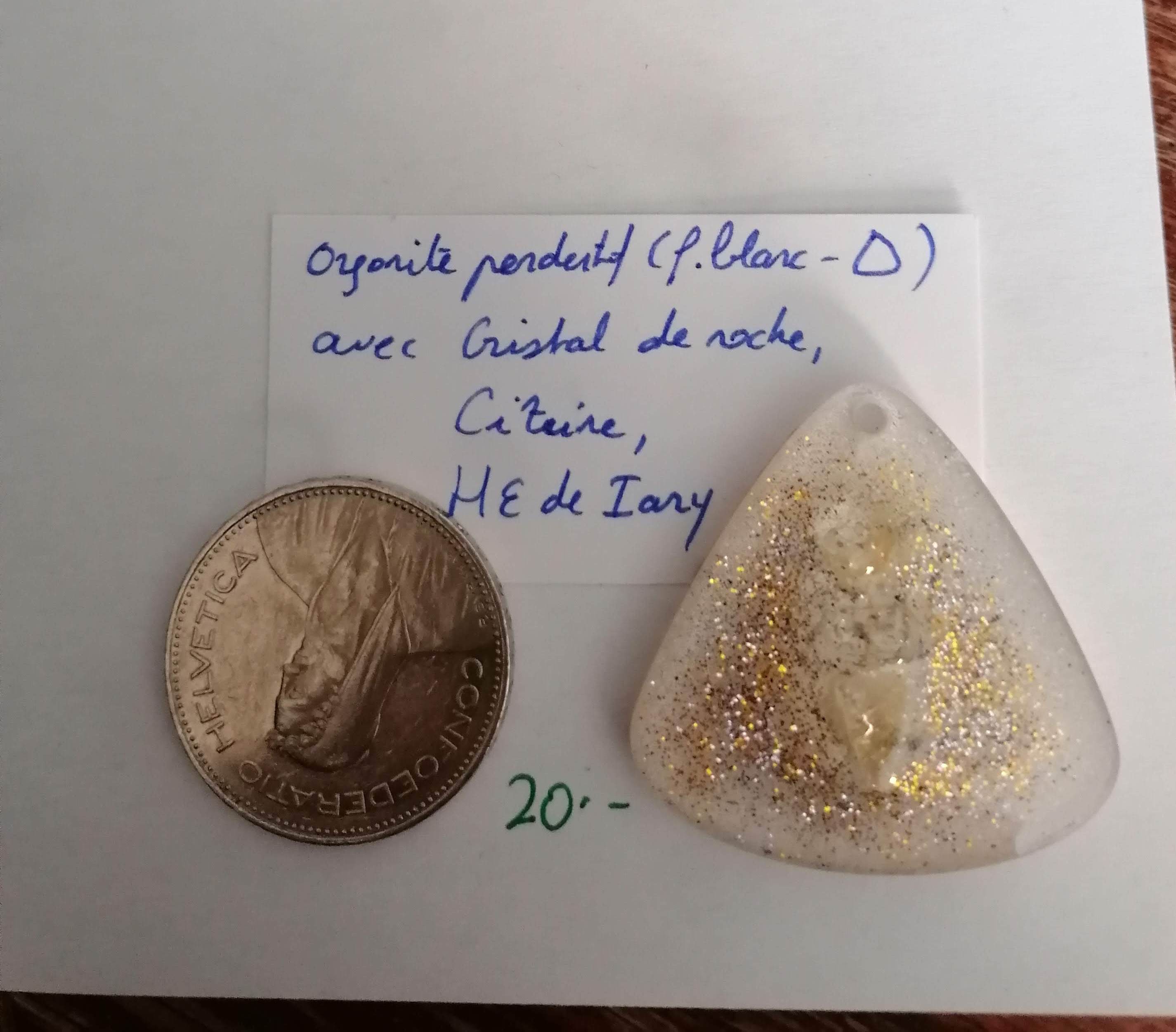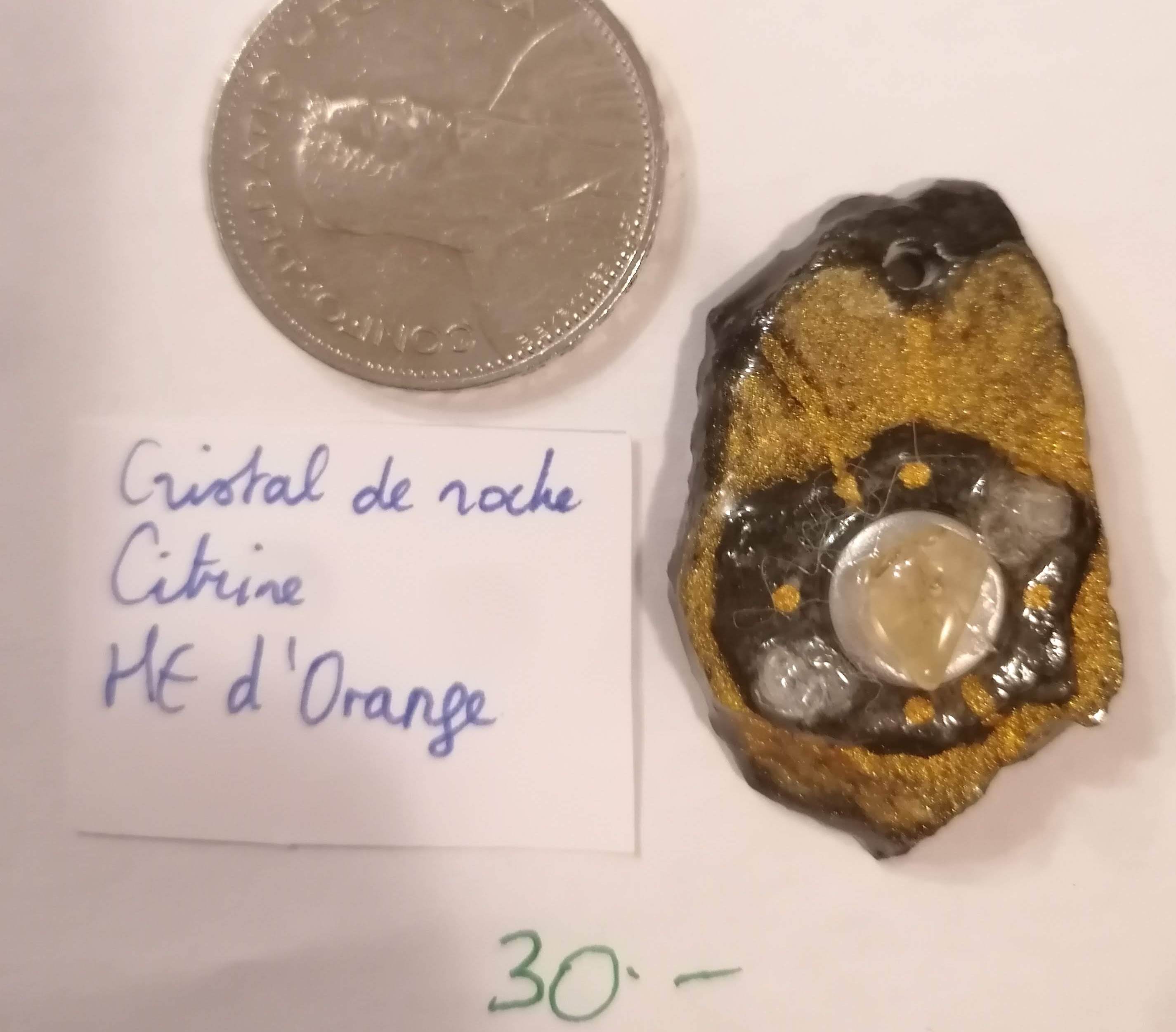 Des pierres ramassées durant mes balades, transformées en Orgonites pendentifs, 30.- pièce